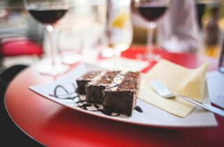 Sweet Yummy Chocolate Cake in the Morning with a Tea